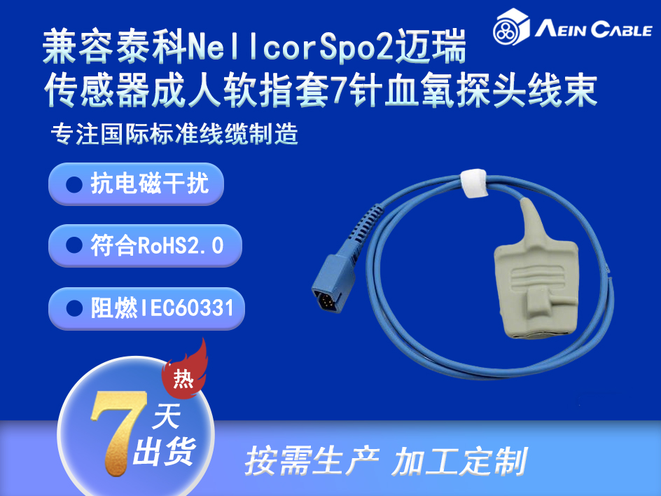 兼容泰科Nellcor Spo2迈瑞传感器成人软指套7针血氧探头线束。